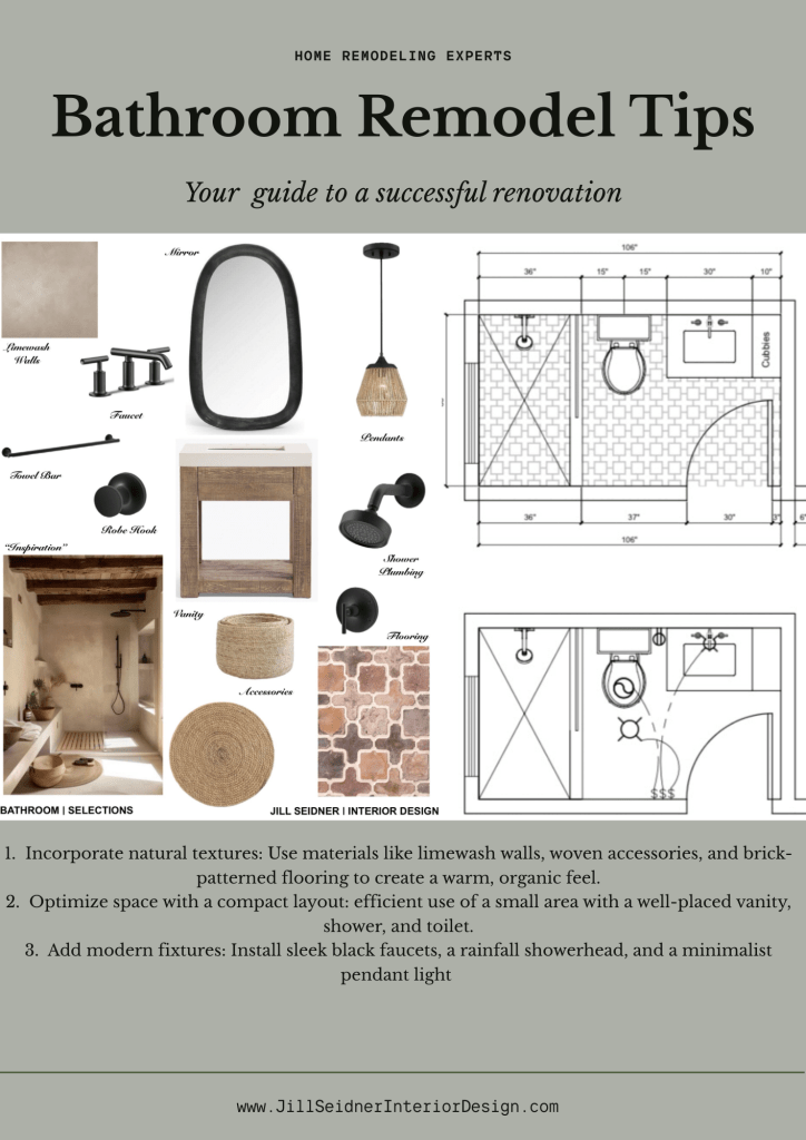 Per her input and inspiration photos, we re-designed the bathroom from the original take on a contemporary Spanish style to a more on-trend natural style.