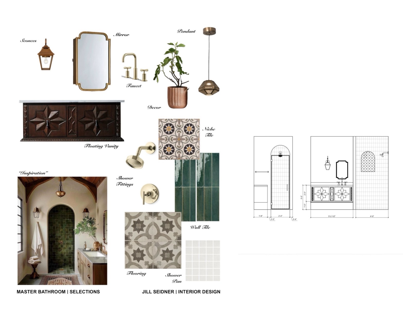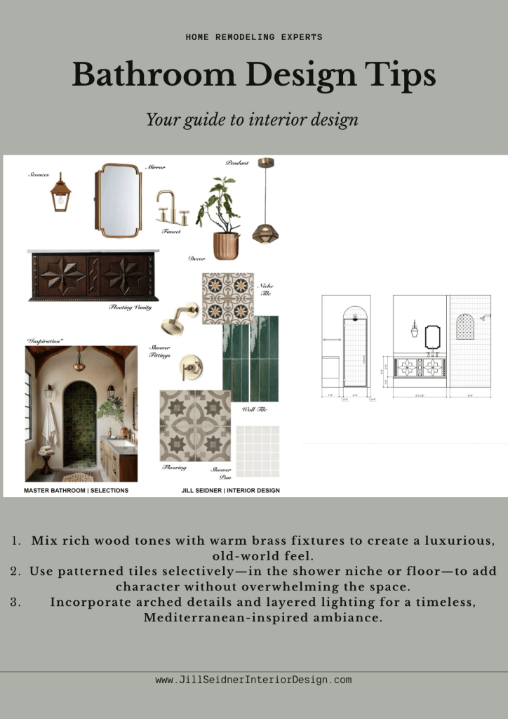 Selections concept board. Here are some design tips inspired by this bathroom design: